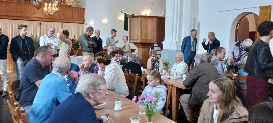 Het vieren van de 70 jaar samenwerking, kwam ook tot uitdrukking in de taartjes na de dienst. Op het gebak stond een foto van beide kerken. Br Bert Riepma vertoonde een film waarop beelden stonden van ongeveer dertig jaar gezamenlijk gemeenteleven. Het was een bijzondere ervaring om als het ware terug te kijken in de tijd. Niet alleen omdat we zagen dat we ouder geworden zijn, maar ook met hoeveel trouw en toewijding een vorige generatie zich heeft ingezet voor de gemeente.