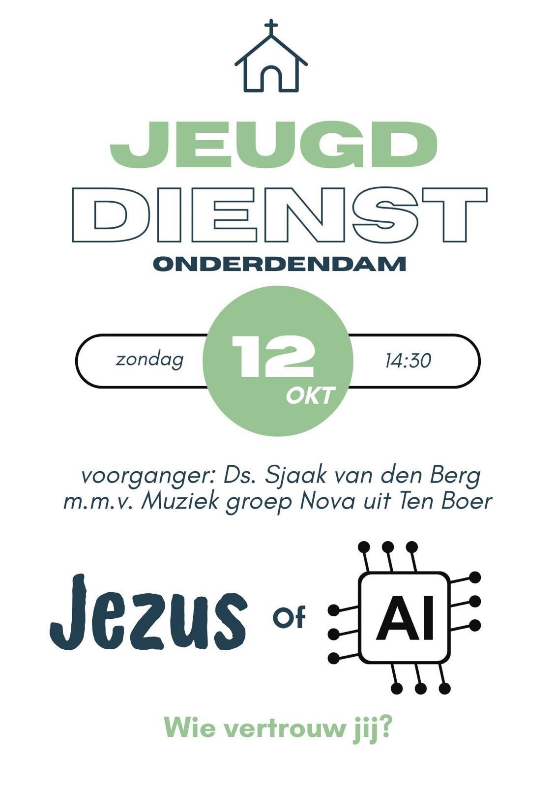 - Onderdendam: jongerendienst, thema: Jezus of AI, wie vertrouw jij?