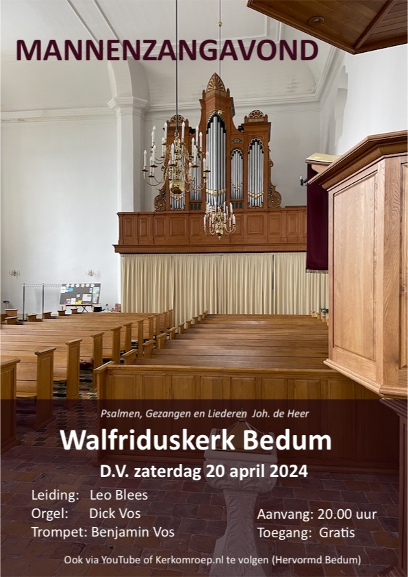 Datum mannenzangavond is verplaatst van 19 naar 20 april 2024.